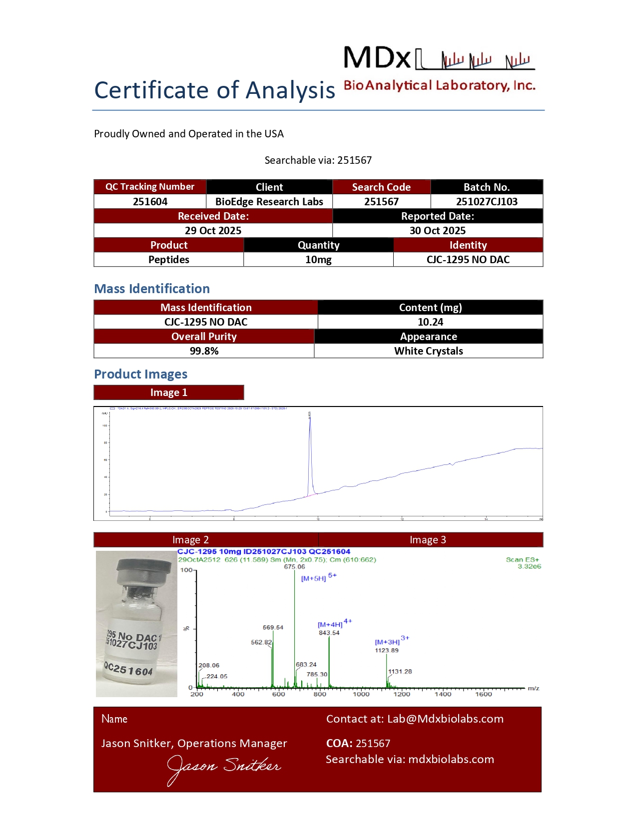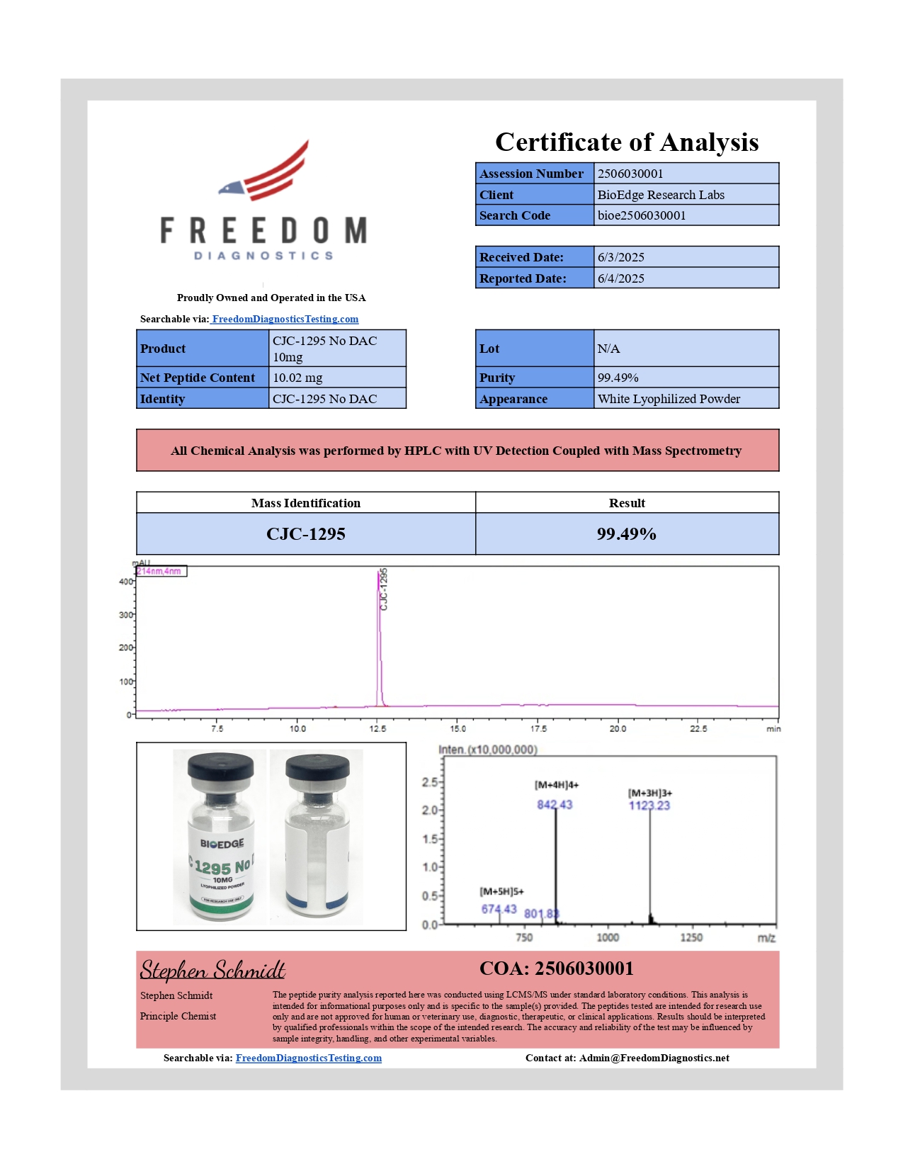Every batch of BioEdge CJC-1295 No DAC undergoes independent third-party testing prior to release. Testing is performed by ISO-accredited laboratories with results available on each product page.