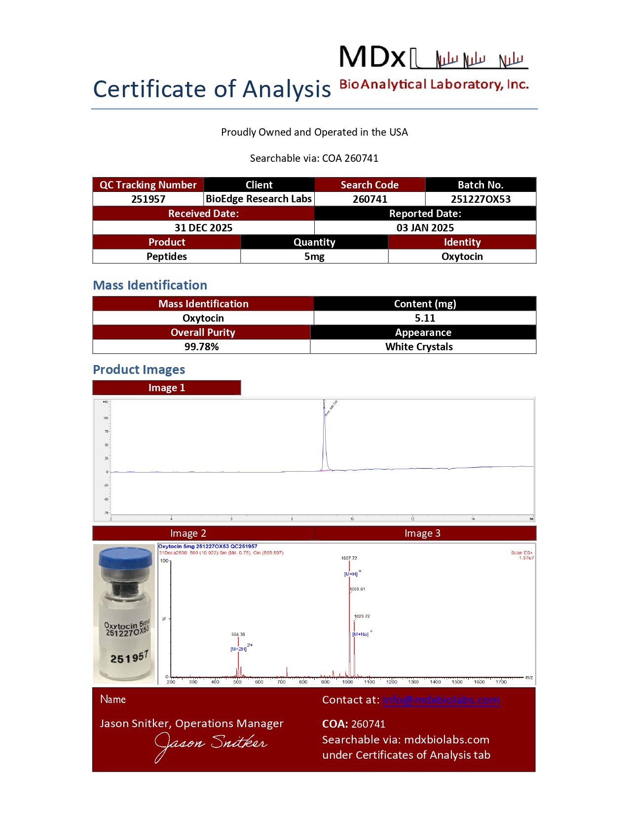 Every batch of BioEdge Oxytocin undergoes independent third-party testing prior to release. Testing is performed by ISO-accredited laboratories with results available on each product page.